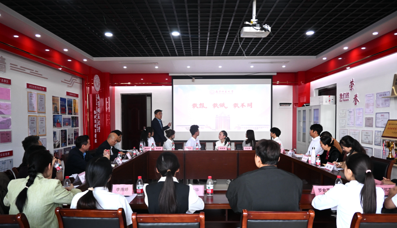 座谈会上,物理与电子学院陈东院长汇报了学院创新人才培养成效与未来规划。龙妮娜副校长充分肯定物电学院以专创融合在促学风、强专业、提质量等方面所取得的人才培养成效,并以“氛围好、理念新、特色显、成果丰、素质优”五个关键词给予高度评价。她希望学院进一步浓厚科研创新氛围,彰显专业实力与特色,聚力学风建设,引导学生爱学习、会学习、学习好;聚力考研工作,精准对接学生需求,多措并举助力更多学子继续深造;聚力各类科研创新大赛,整合优质师资与平台资源,以赛促学、以赛促练,提升学生专业核心竞争力。她强调要坚持以就业为导向、以考研为进阶,构建分层分类育人体系,搭建优质资源平台,拓宽学生发展机会。