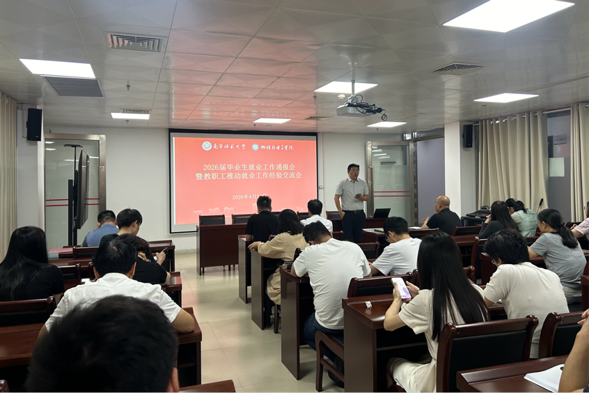 为扎实推进2026届毕业生就业工作,切实提升就业质量,学院于4月21日下午在武鸣校区实验楼1517会议室召开2026届毕业生就业进展情况通报会暨推进就业工作经验交流会,学院领导班子、全体教师参会。